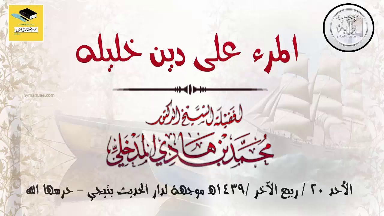 المرء على دين خليله الشيخ محمد بن هادي المدخلي الإثنين 1439/04/21هـ